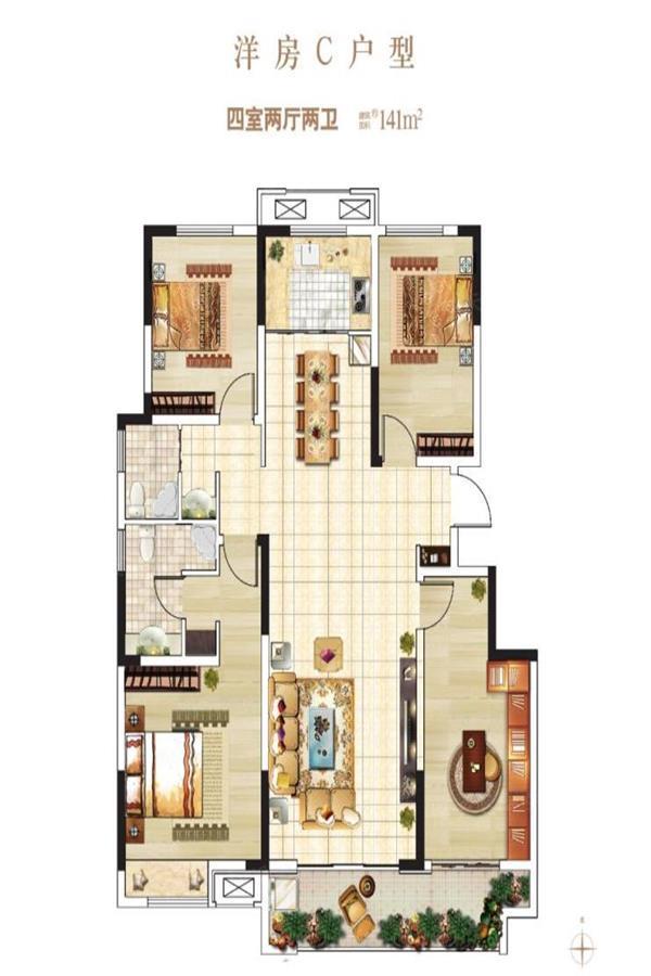 将中式修建的精髓与现代修建手艺相融合,,,,,南北通透,,,,,115—165㎡差别户型的电梯墅院洋房设计空间使用科学合理。。
